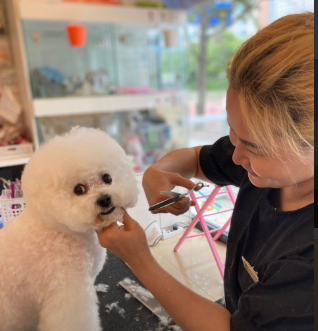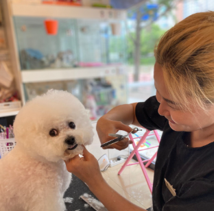 "첫 미용이라 걱정 많았고 엉킨 털도 많았는데, 뽀용뽀용하게 다 풀어서 미용해주셨어요. 알고 보니 비숑 전문이라고 하시더라고요! 더 믿음이 갑니다."